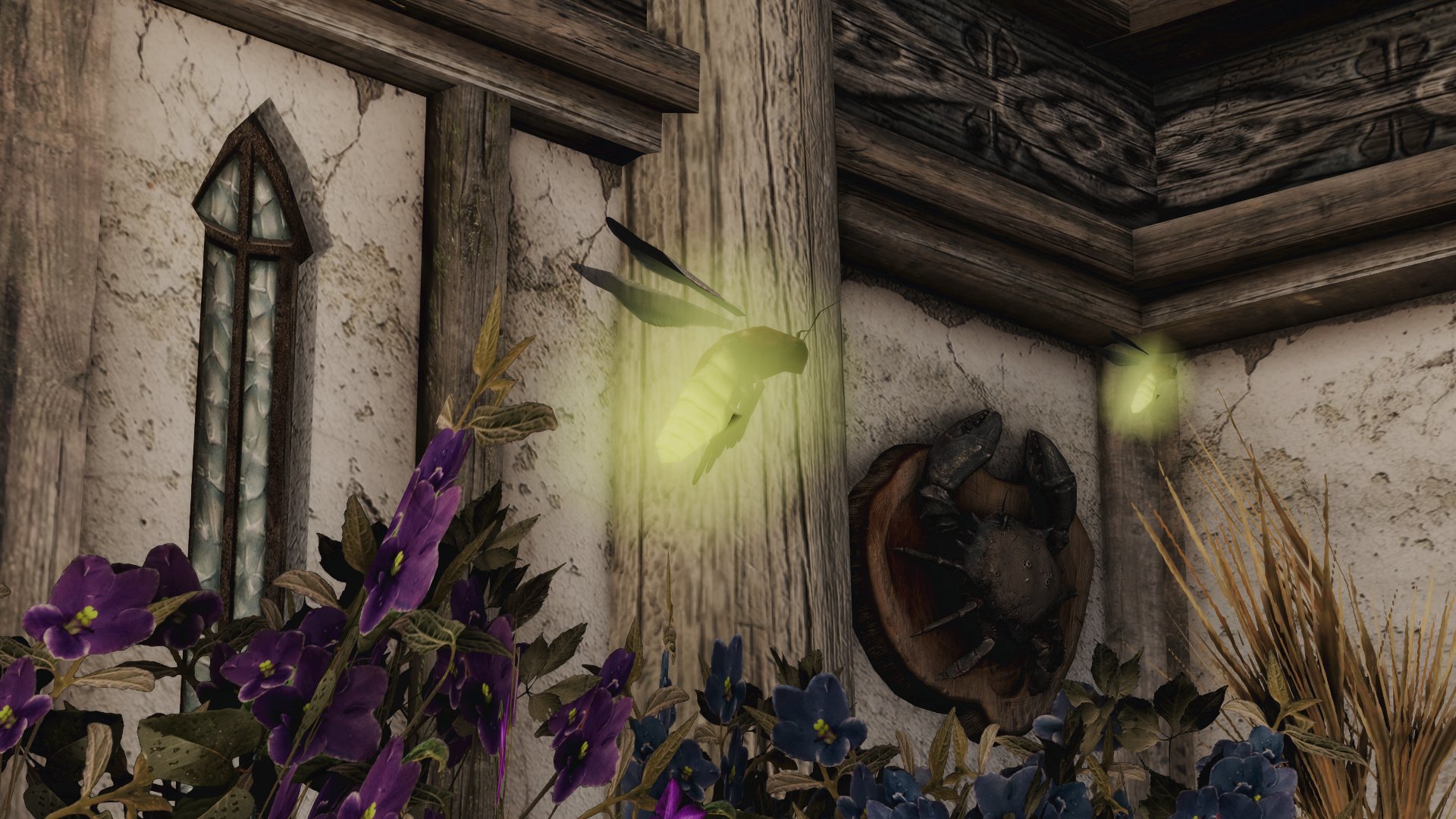 ハースファイアの自宅に温室を作ると、ハチやホタルがわんさか湧きます。錬金素材としては優秀ですが、羽音がぶんぶんぶんぶん気になるので、完全に静かにさせるMODを作りました。